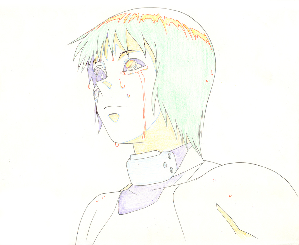 After being beaten and fataly damaged by Birdy - Ondine walks past her and leaves the battlefield. The rain trickles down her face, mimicing tears.